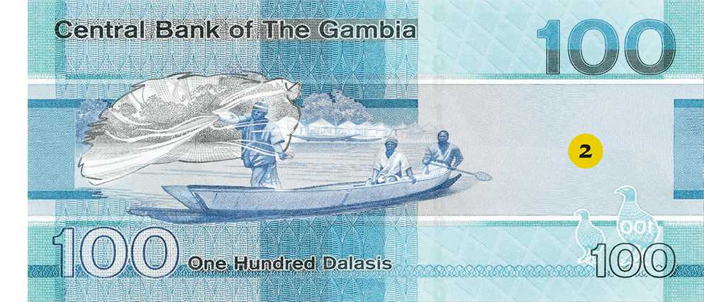 Watermark with lighter area - the watermark of the crocodile’s head with a lighter area showing the note value and a stylised palm tree which can be seen from both sides of the note.